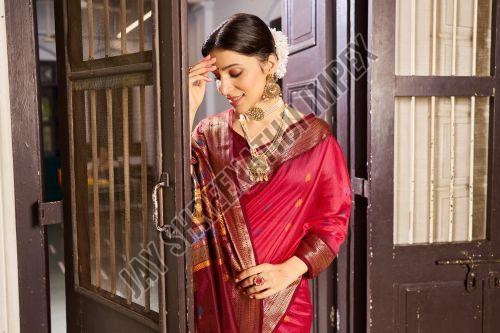 Ladies Designer Red And Maroon Printed Silk Saree