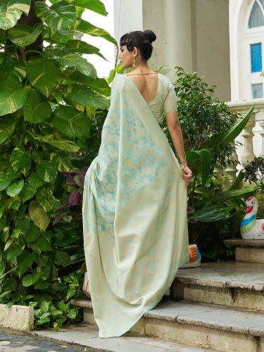 Ladies Sea Green Cotton Luckhanvi Sarees