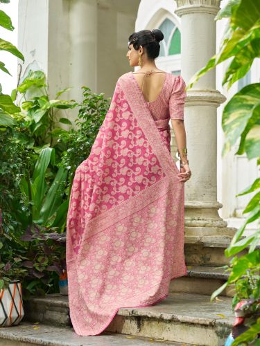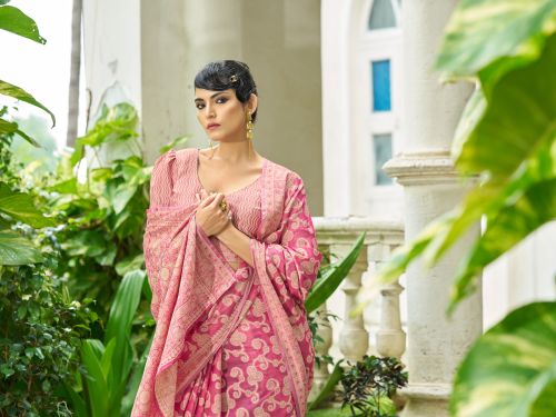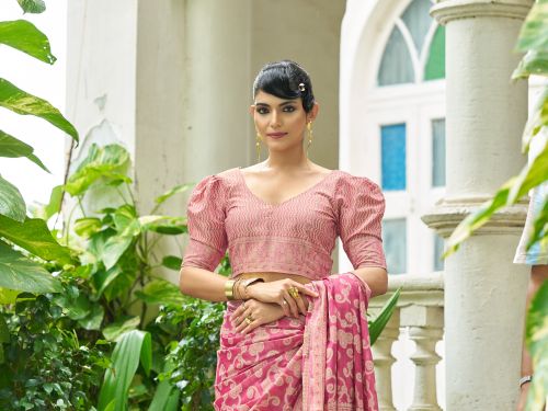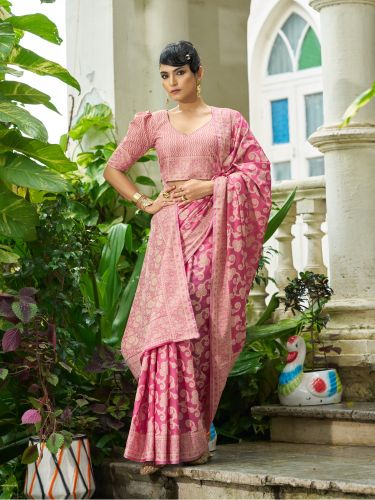Ladies Pink Cotton Luckhanvi Sarees