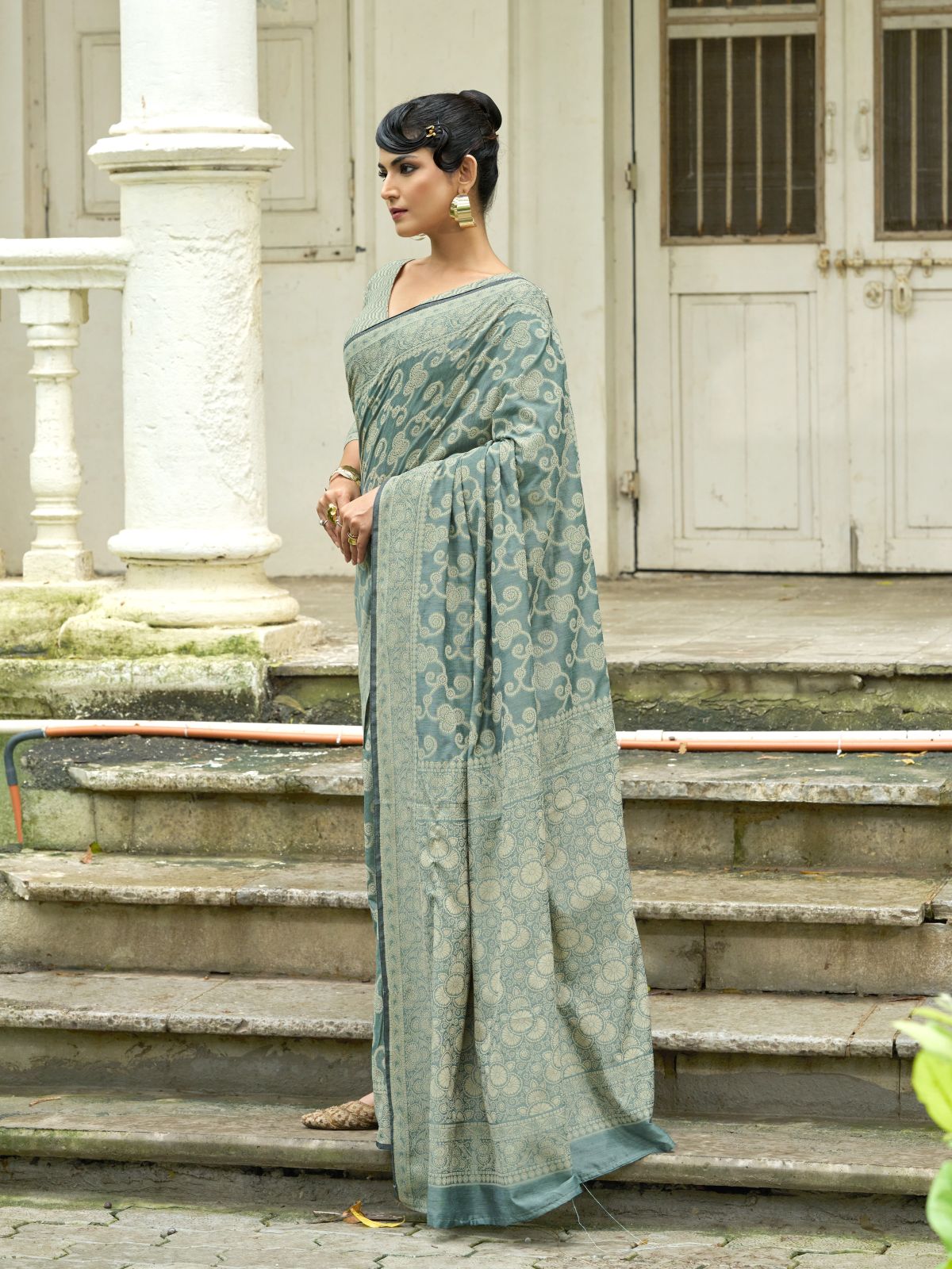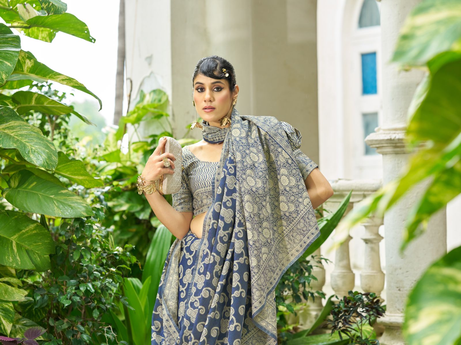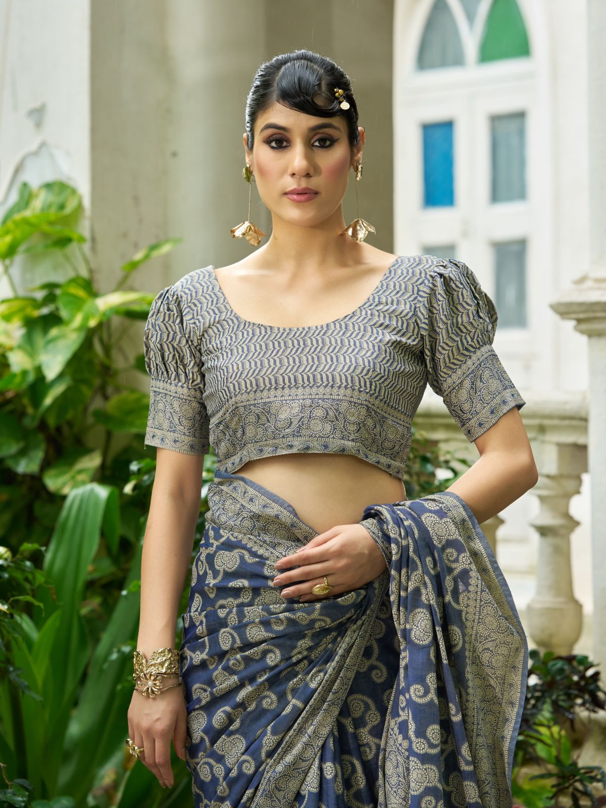 Elegant Style with Ladies Cotton Linen Printed Saree