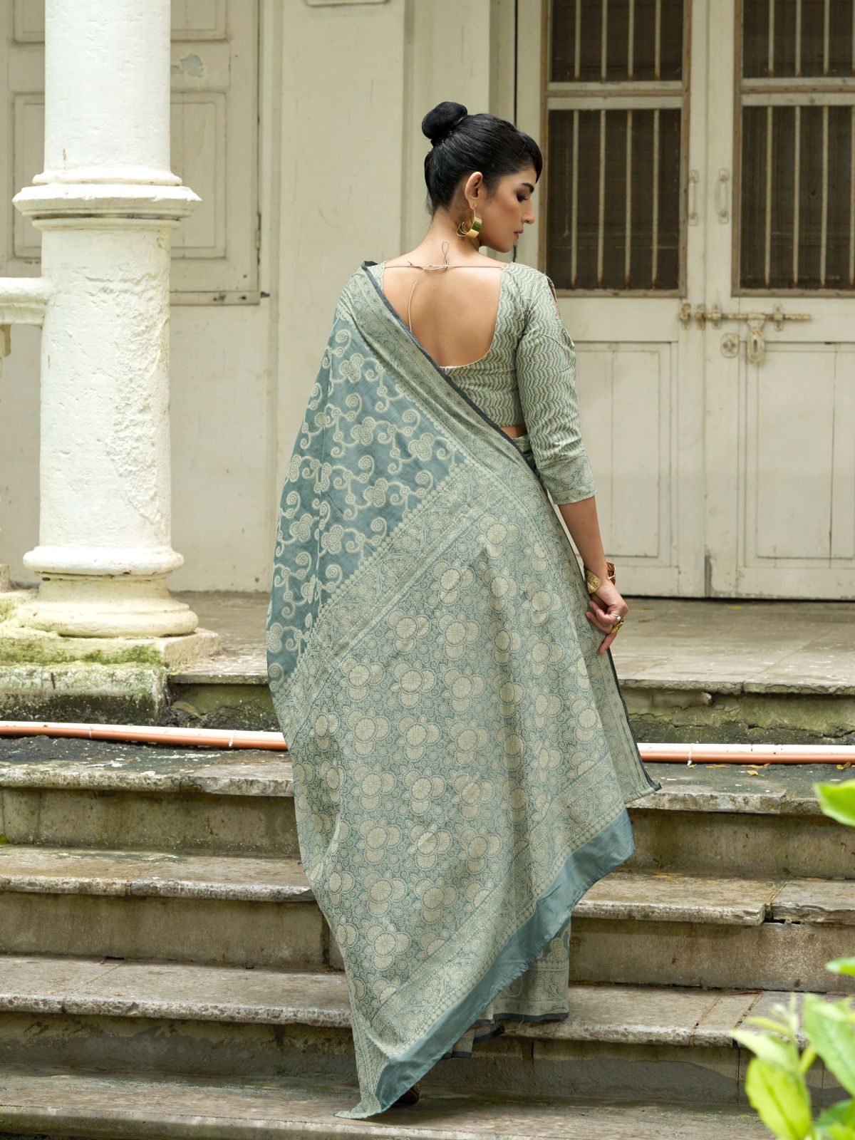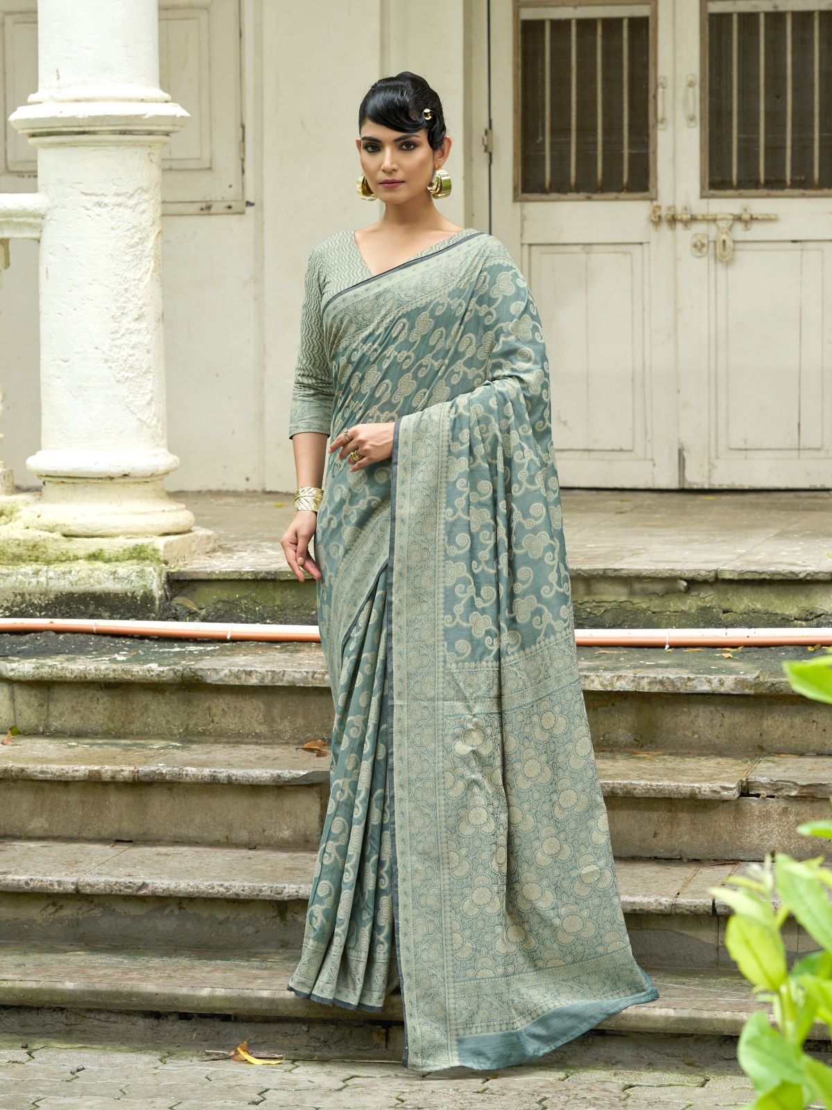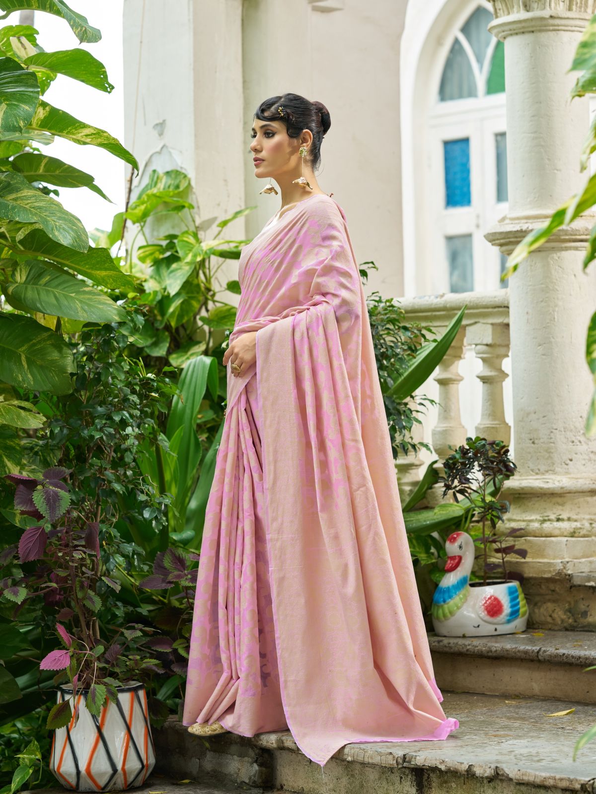 Its unique texture and bright design give your look a touch of elegance. Because this saree is simple to wear and style, it appeals to those who want comfort and elegance together. Keep yourself covered in style with his floral weaving print linen cotton saree all day long.