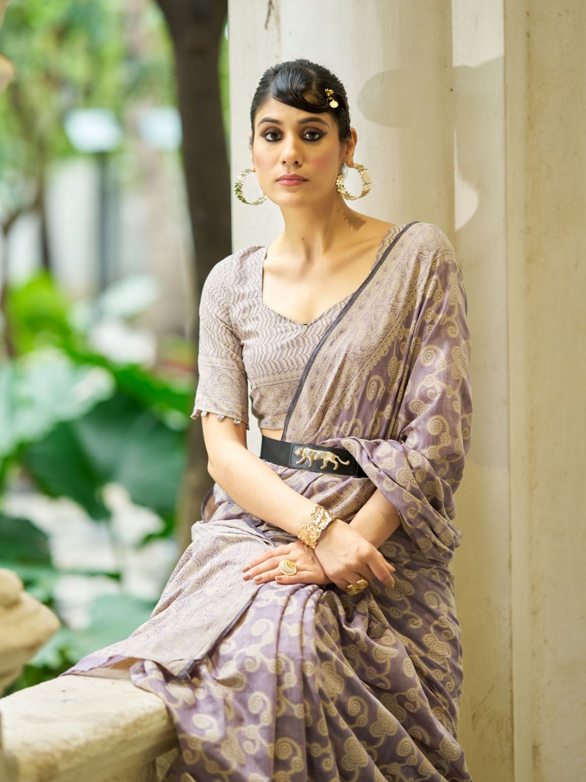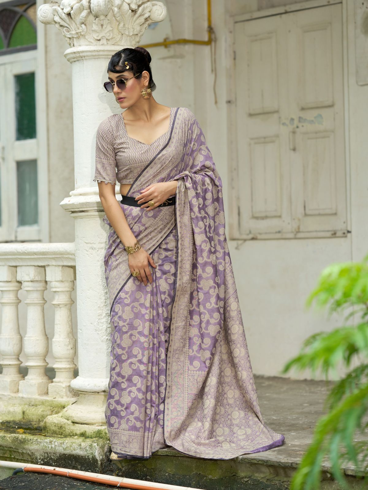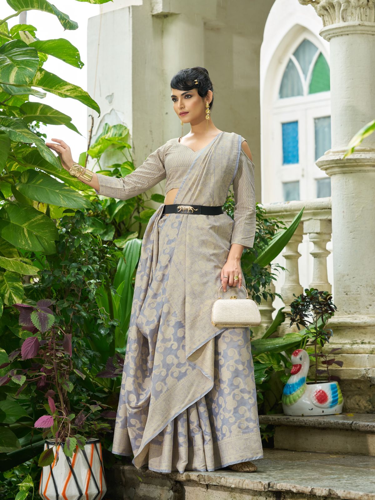 Chic and Comfortable in Lady's Floral Weaving Print Linen Cotton Saree