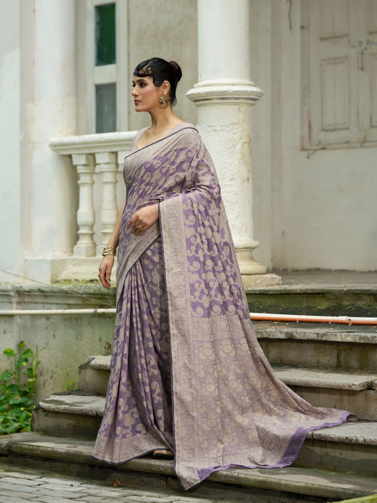 We offer the elegant Ladies Lavander Cotton Luckhanvi Sarees by Jay Shreenathji, perfect for all occasions. This weaving saree in a lovely lavender color is a must-have in every woman's wardrobe. Made from high-quality cotton, it is easy to wash and maintain. The saree comes with a matching weaving blouse, adding to its charm. Our packaging is tailored to meet customer requirements, and the sarees are sourced from all over the world. Ideal for manufacturers, exporters, suppliers, and traders looking for a versatile and stylish product.